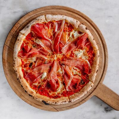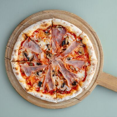 Томатный соус, сыр моцарелла, цукини, баклажаны, паприка, вяленые томаты, базилик (30 см)