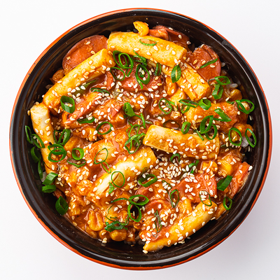Токпокки, соус для токпокки, сыр моцарелла, кунжут