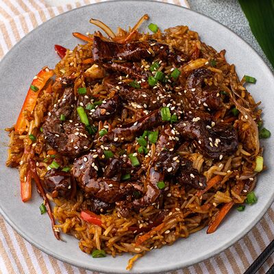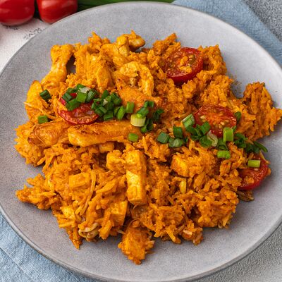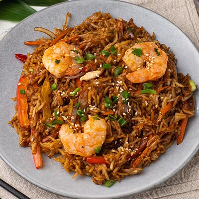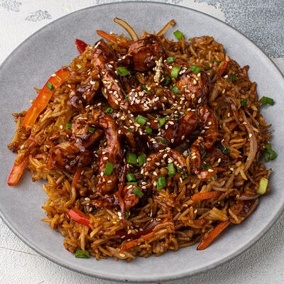 Куриное филе, кешью, рис, чеснок, имбирь, лук зеленый, кунжут, карри, масала, паприка красная