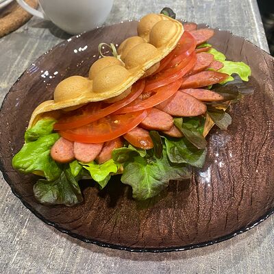 Вафля с охотничьей колбаской доставка