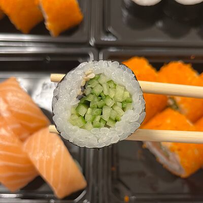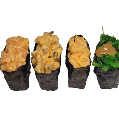 Снежный краб, огурец, сыр, Яки соус, кунжут, Унаги соус