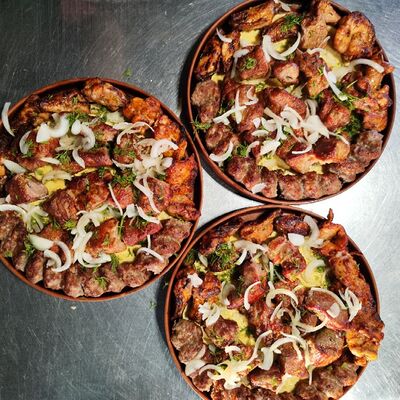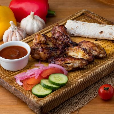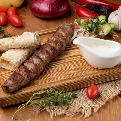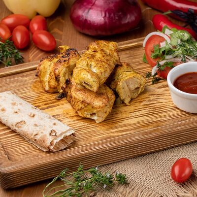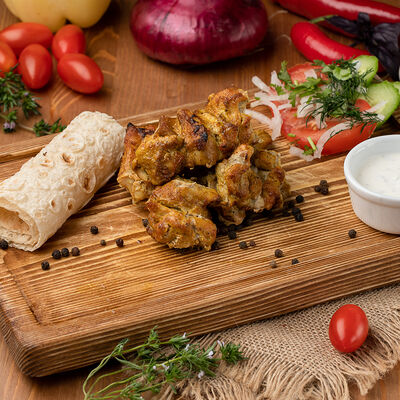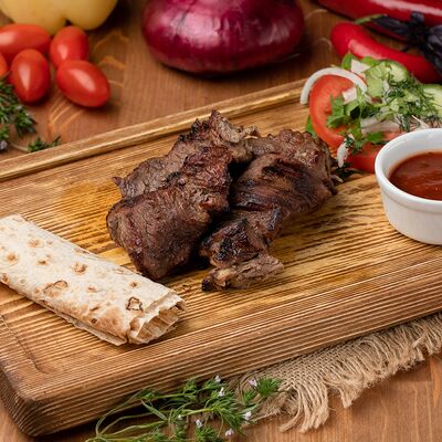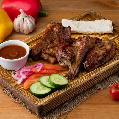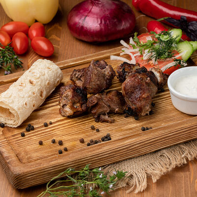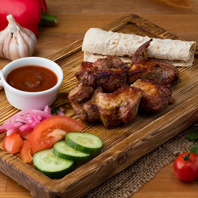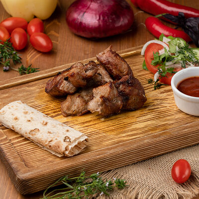 Свиная лопатка, тонкий лаваш, маринованная капуста, маринованный лук: подача может отличаться от фото