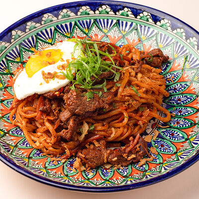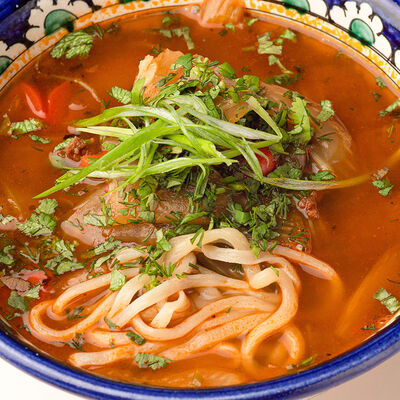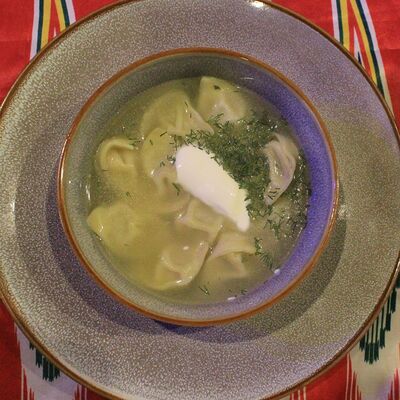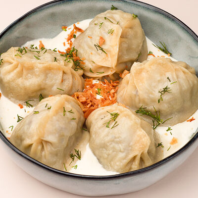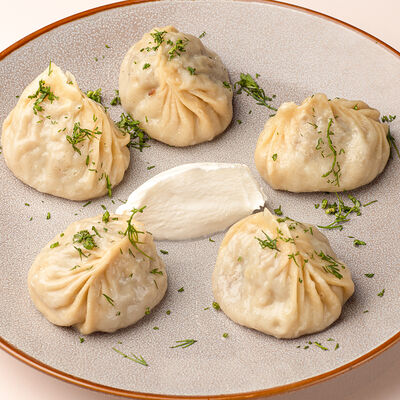 Манты с говядиной (халяль), сметана, зелень (5 шт.)