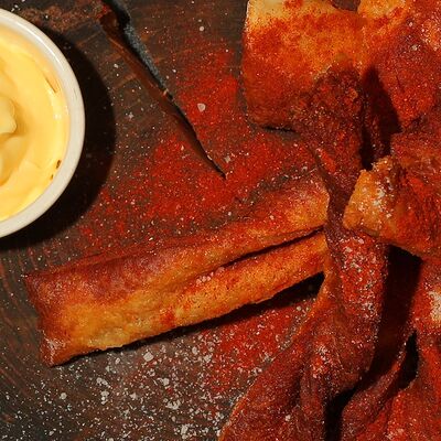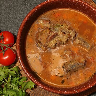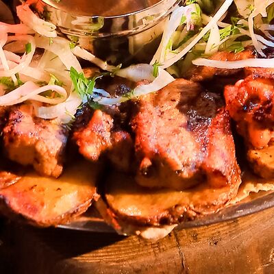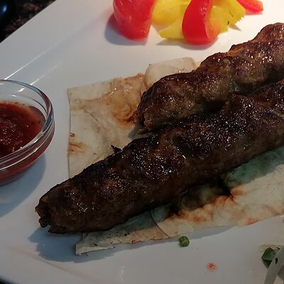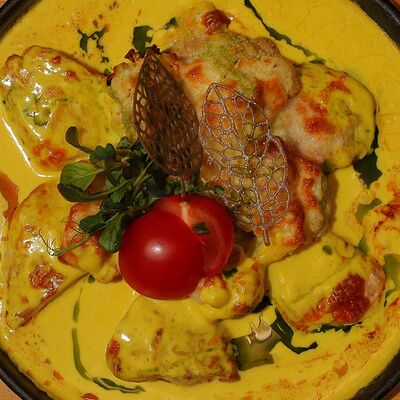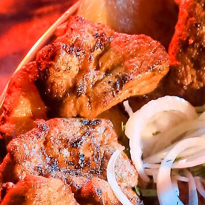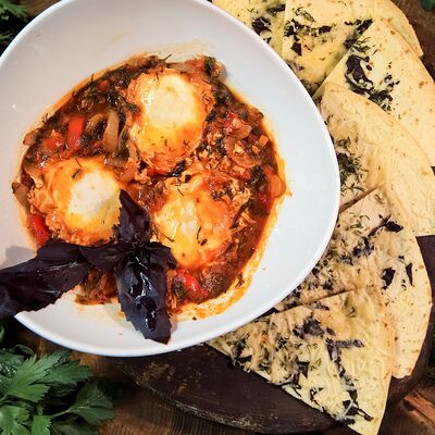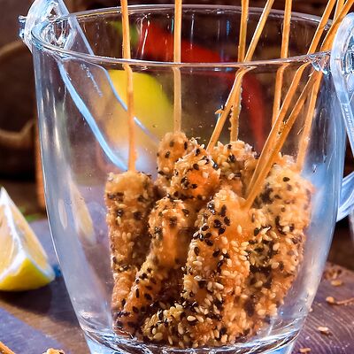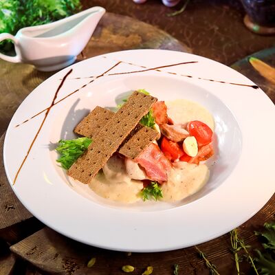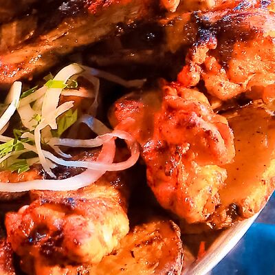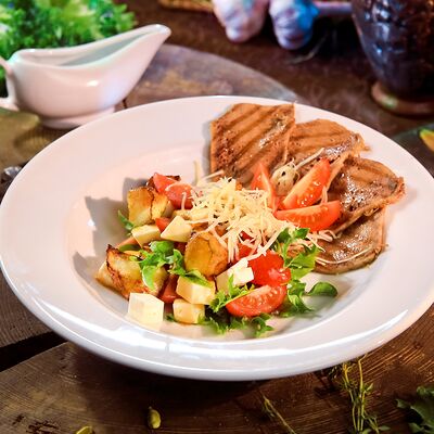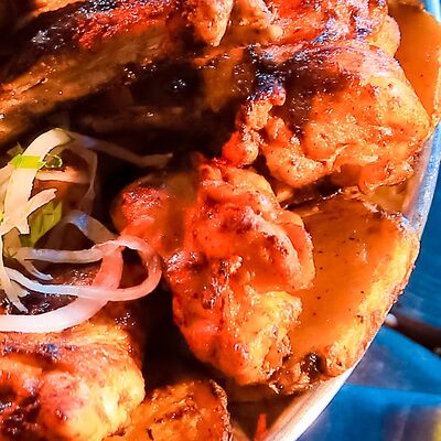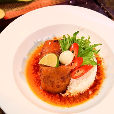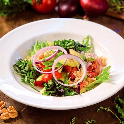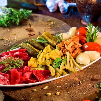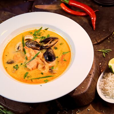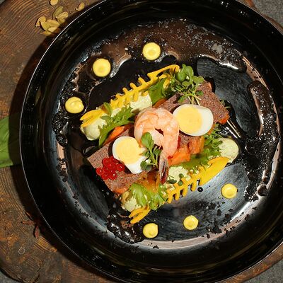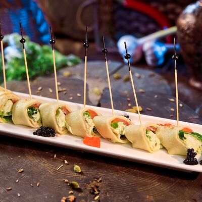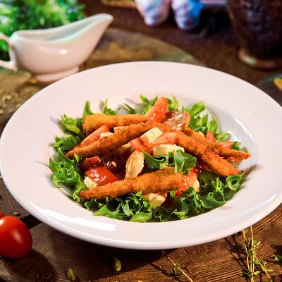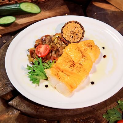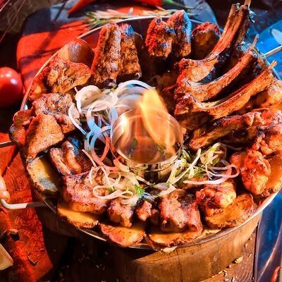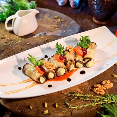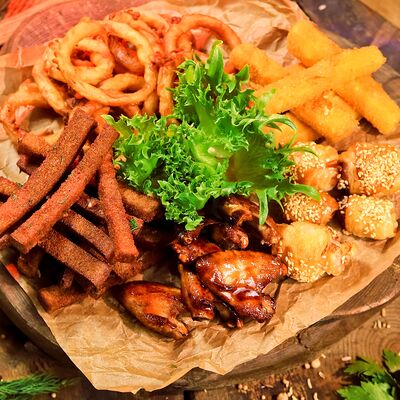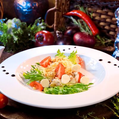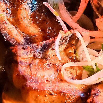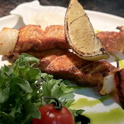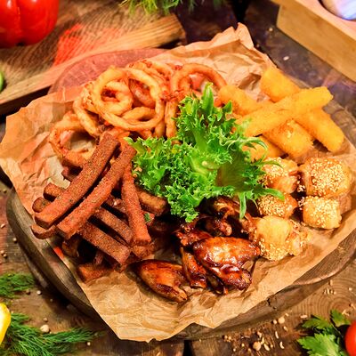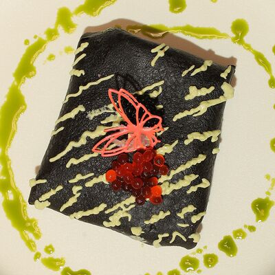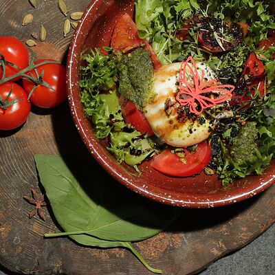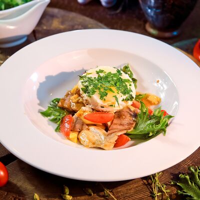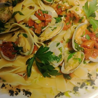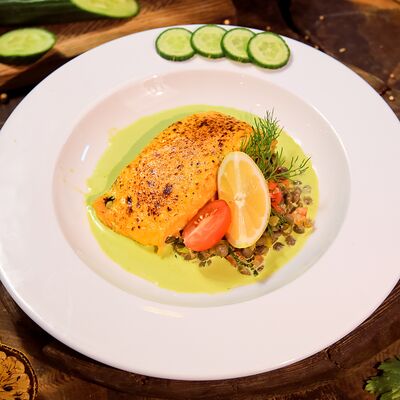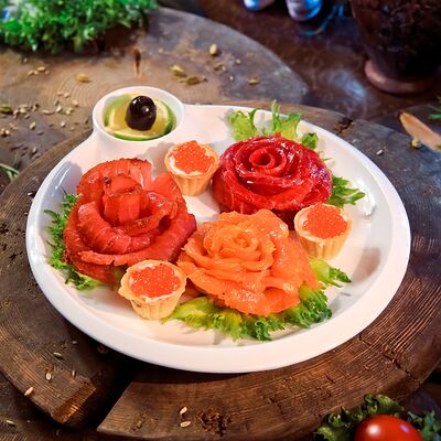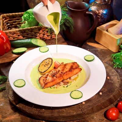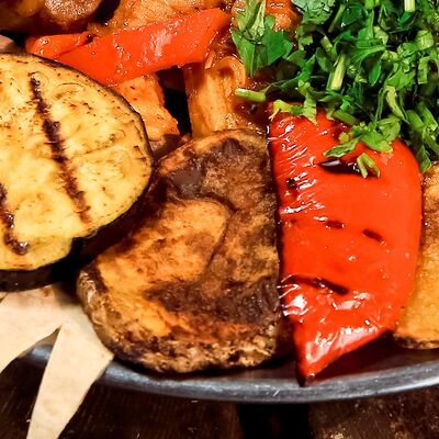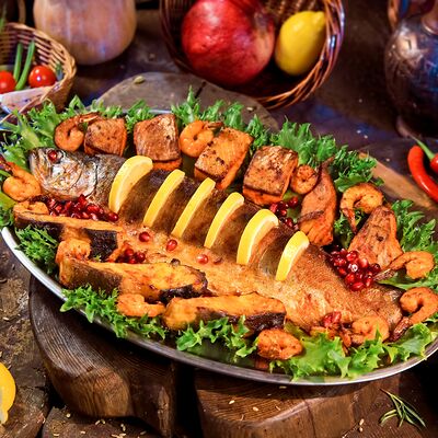 Креветки, мидии, кальмары, вонголе, жаренные на сильном огне, приправленные овощной сальсой. Подаются с кабачками и баклажанами гриль. На 4-6 персон