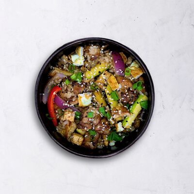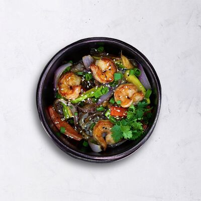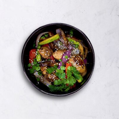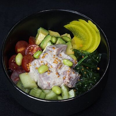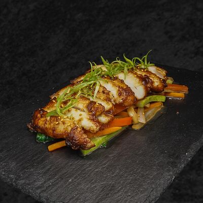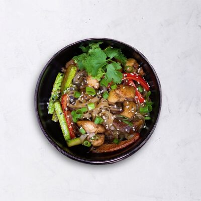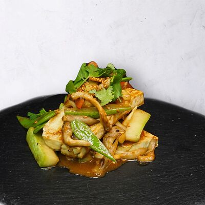 Мисо паста, овощной бульон с бонито, вешенки, сыр тофу, вакаме, зелёный лук, кунжут