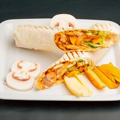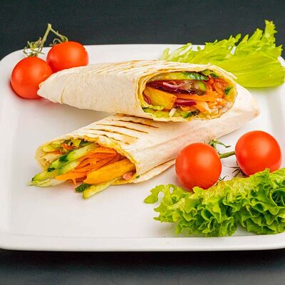 Домашний лаваш, куриное филе, помидоры, огурцы, пекинская капуста, фирменный соус