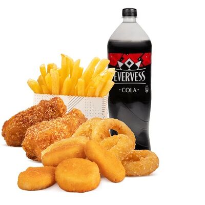 Премиум бургер на выбор, картофель фри средняя порция, напиток на выбор