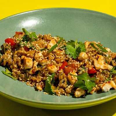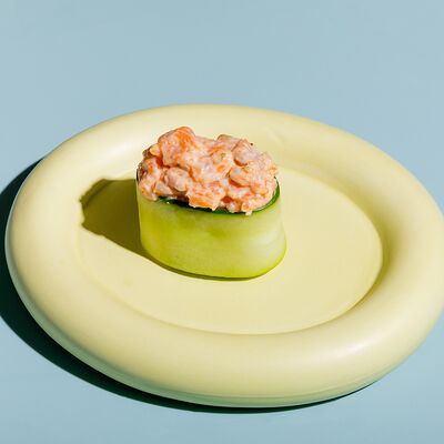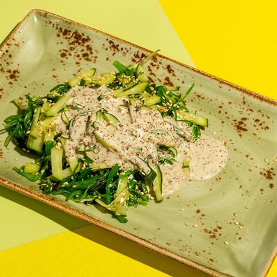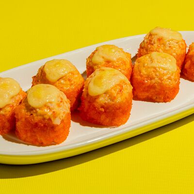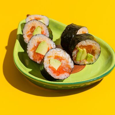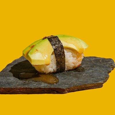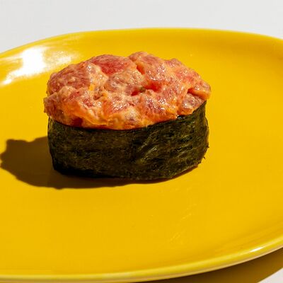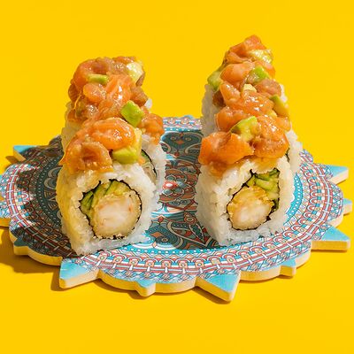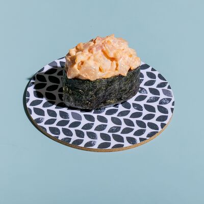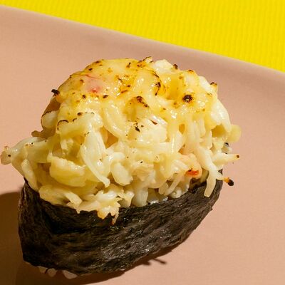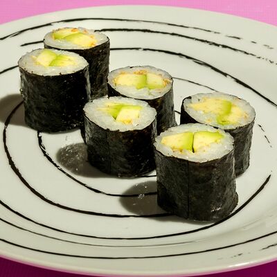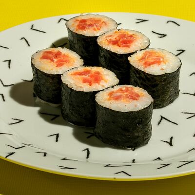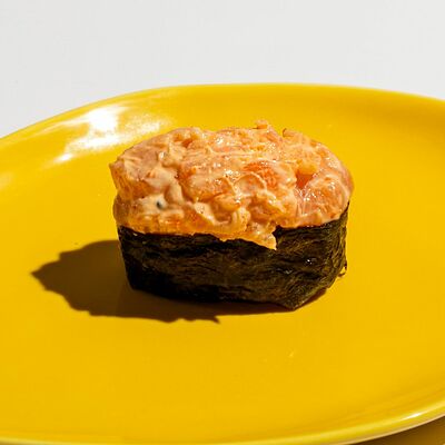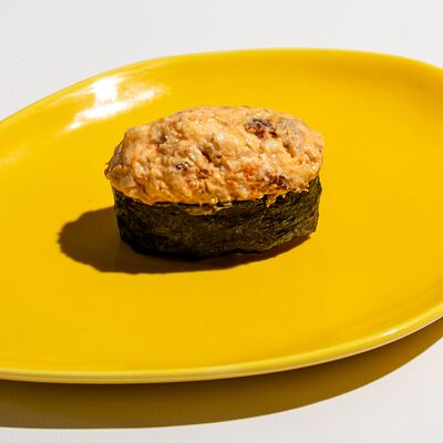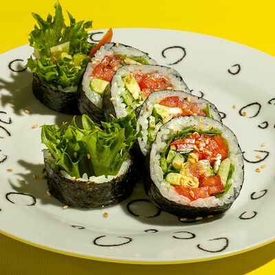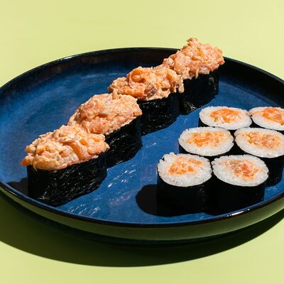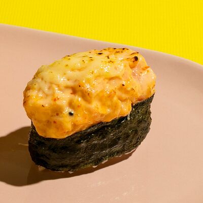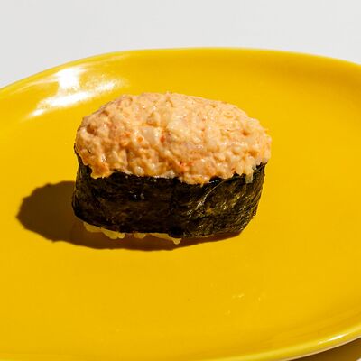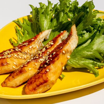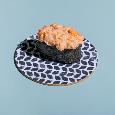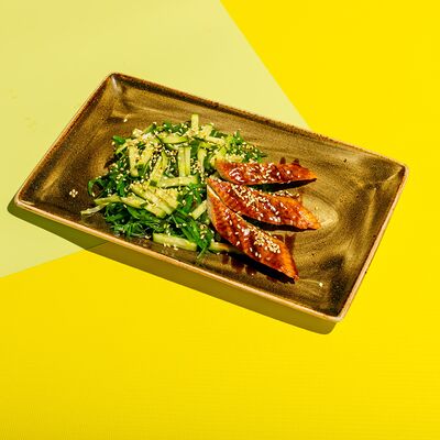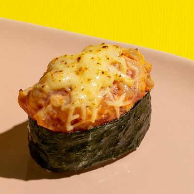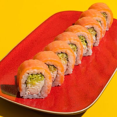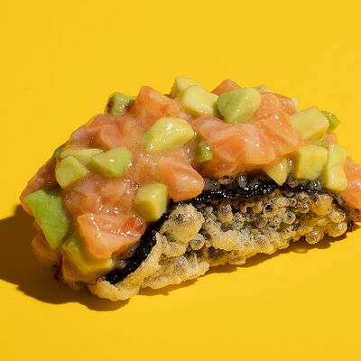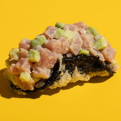 Рис, нори, острый копченый угорь, авокадо, кляр, соус унаги-чили, кунжут