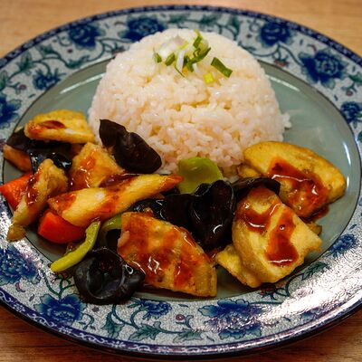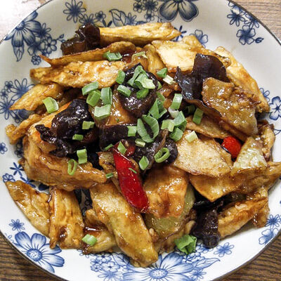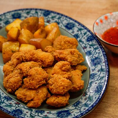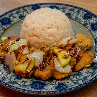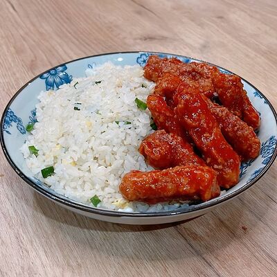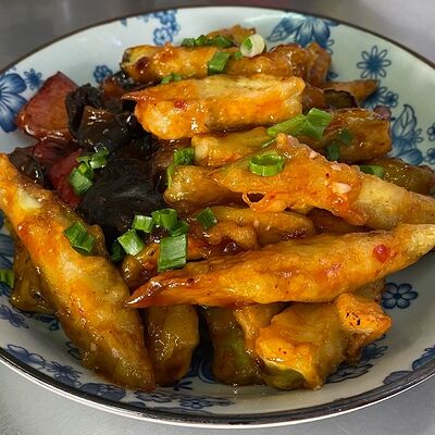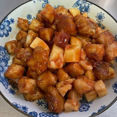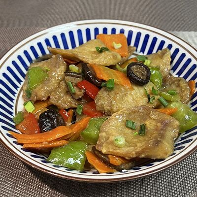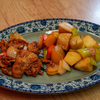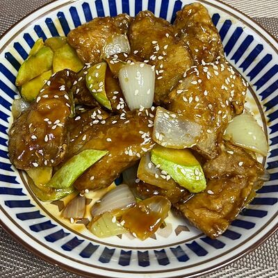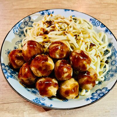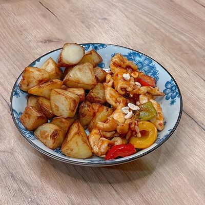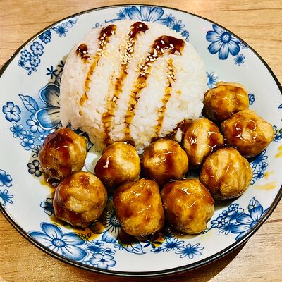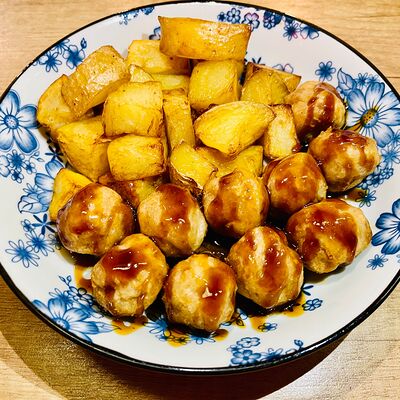 Фрикадельки из cвинoго фарша с картофелем по-деревенски в соевом соусе