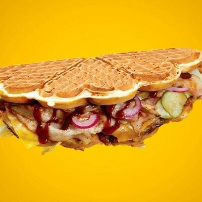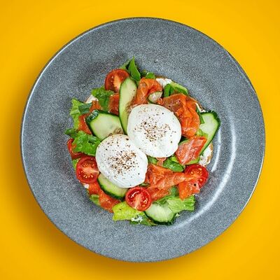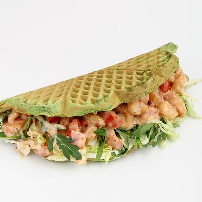 Запеченное куриное филе, томат, айсберг, соус Цезарь, шпинатное тесто