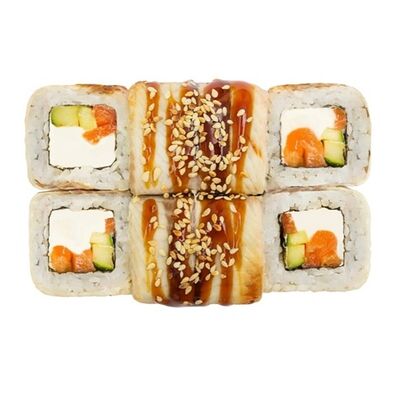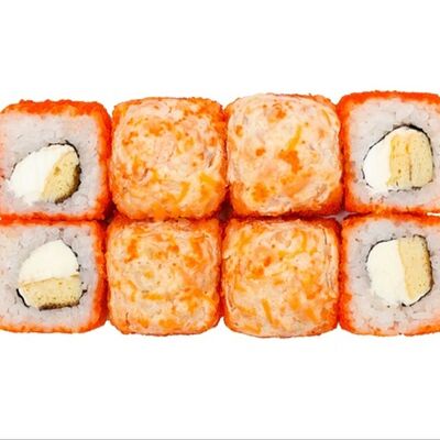 Сыр сливочный, Креветка коктейльная, Кальмар, Масаго, Соус Дабл (10 шт.)