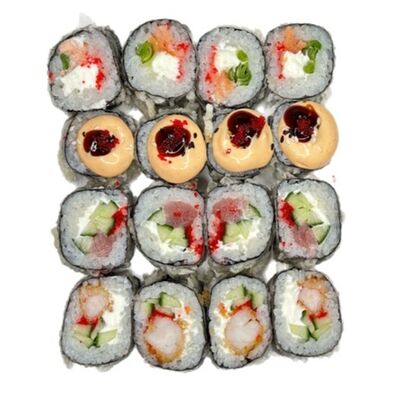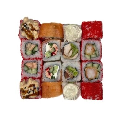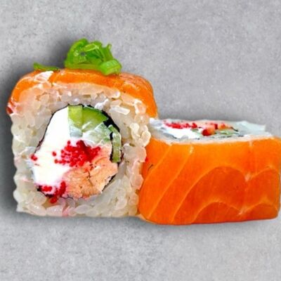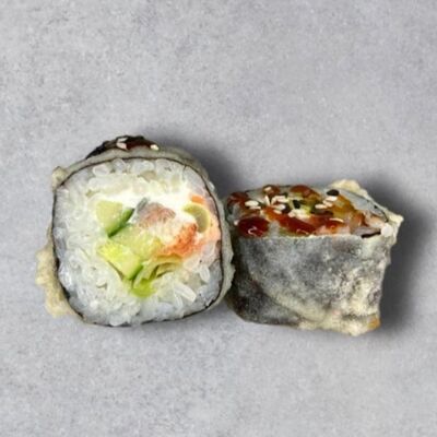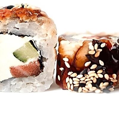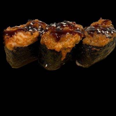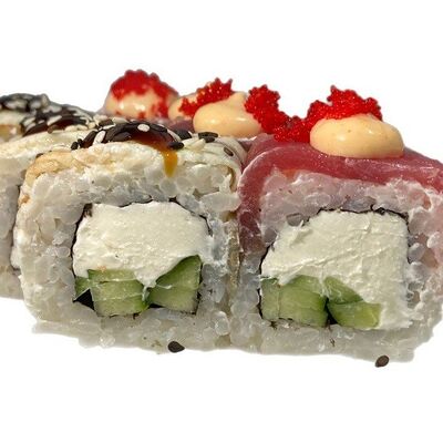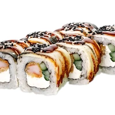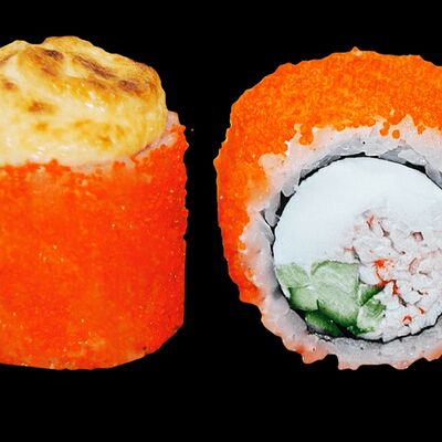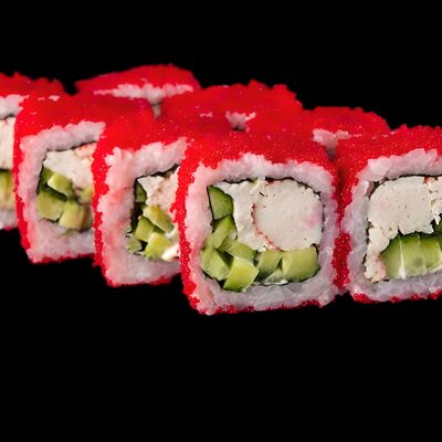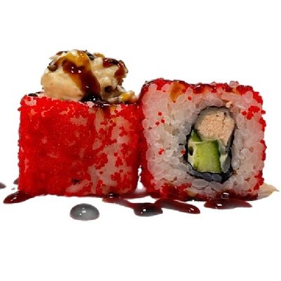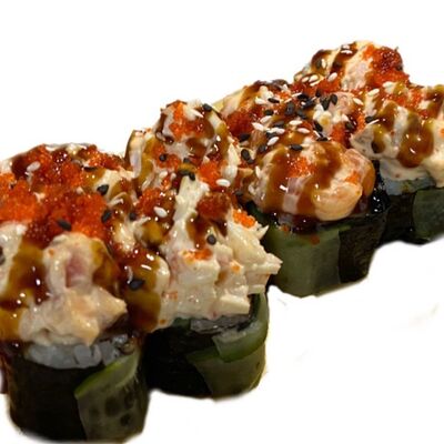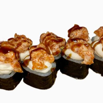 Нори, рис, соус яки, соус терияки, огурец, сливочный сыр, снежный краб, тобико