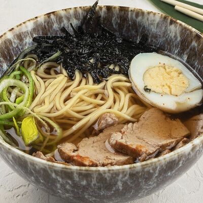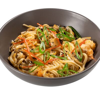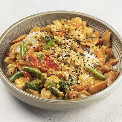 Рис, краб (имитация), омлет тамаго, грибной соус