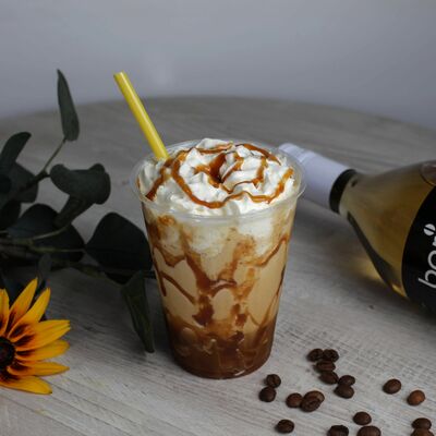 Холодный кофейный напиток с ванильно-карамельным вкусом, украшенный взбитыми сливками