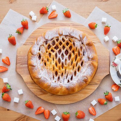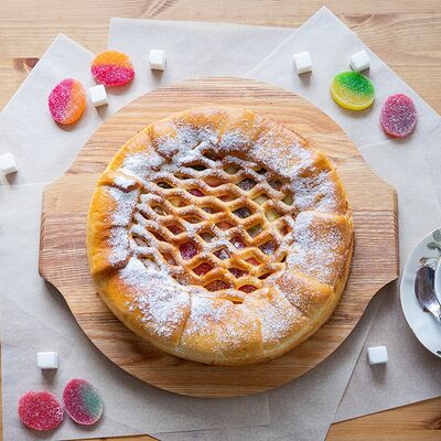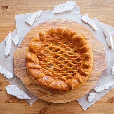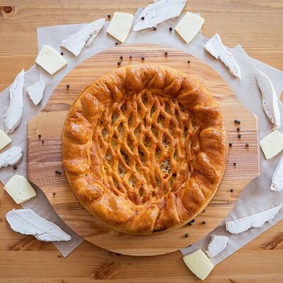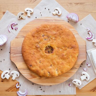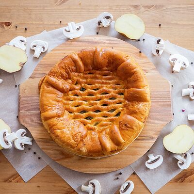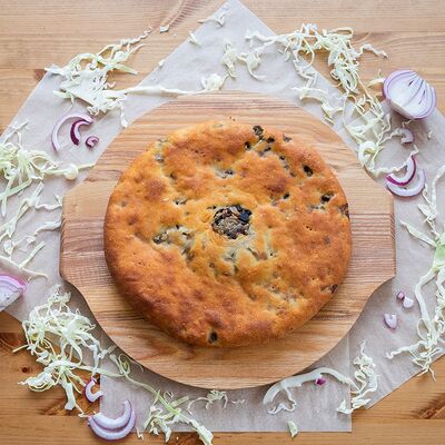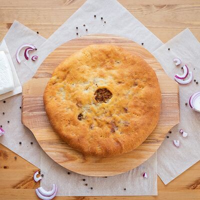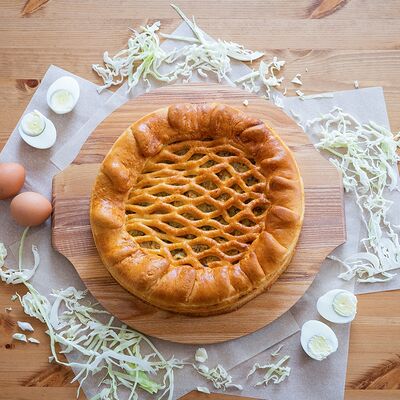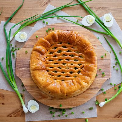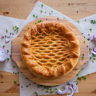 Дрожжевое тесто, минтай отварной, лук, морковь, майонез, соль, перец (20 см). Размер пирога на выбор