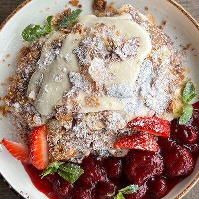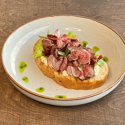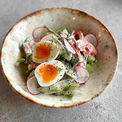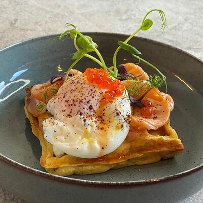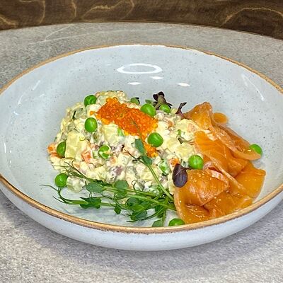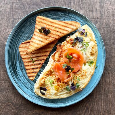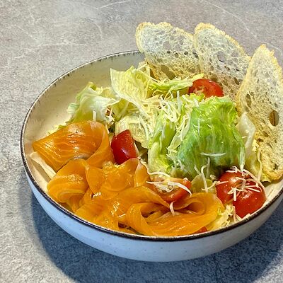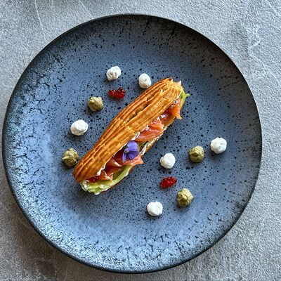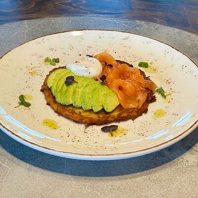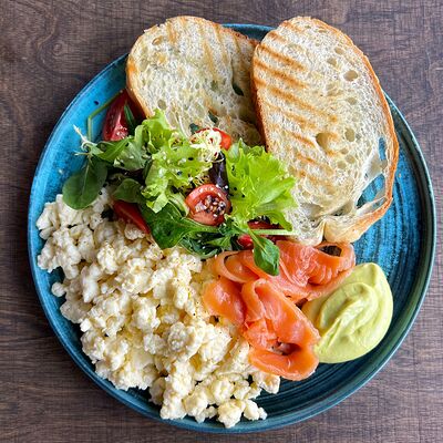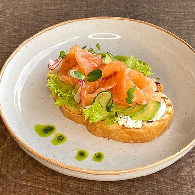 Хрустящая чиабатта, нежный творожный крем, спелое авокадо, лосось собственного посола