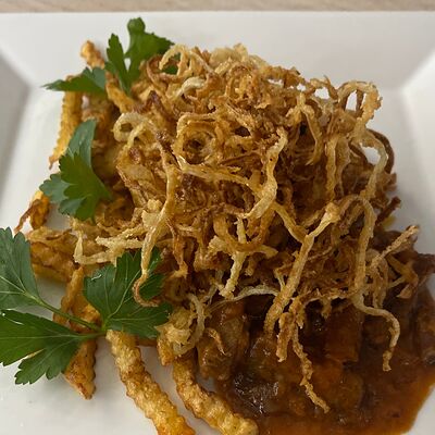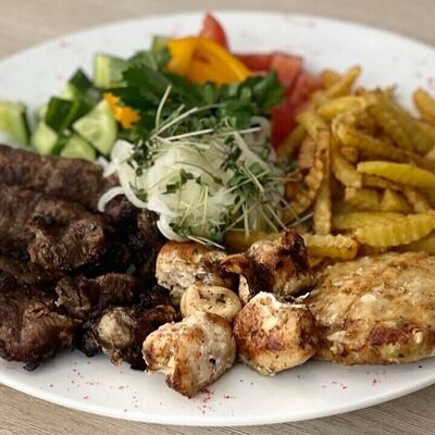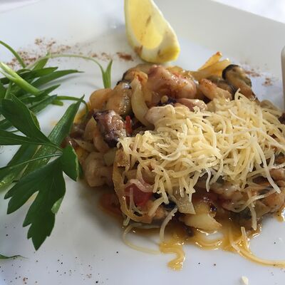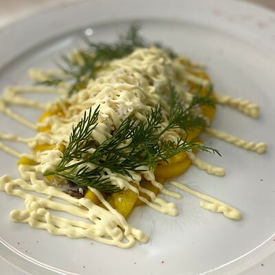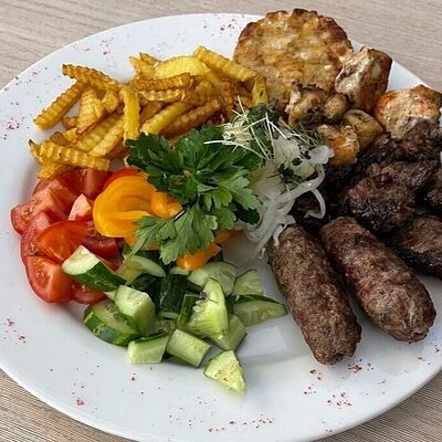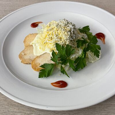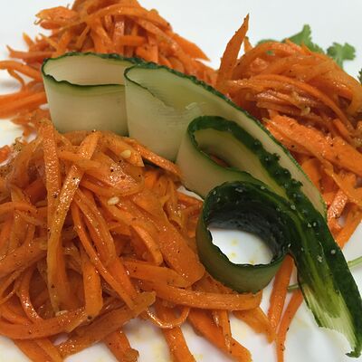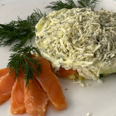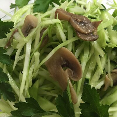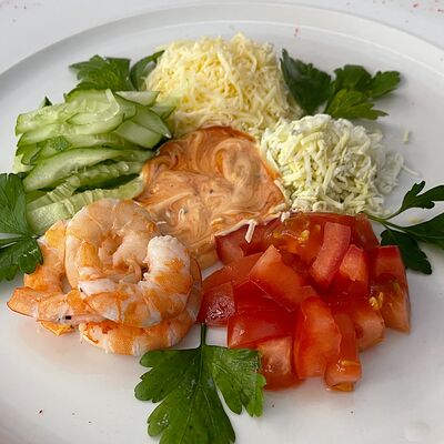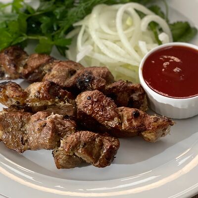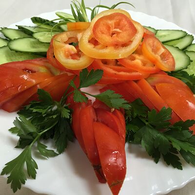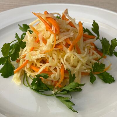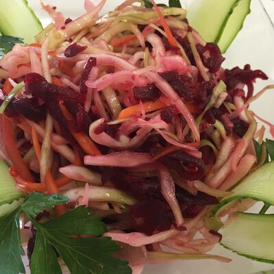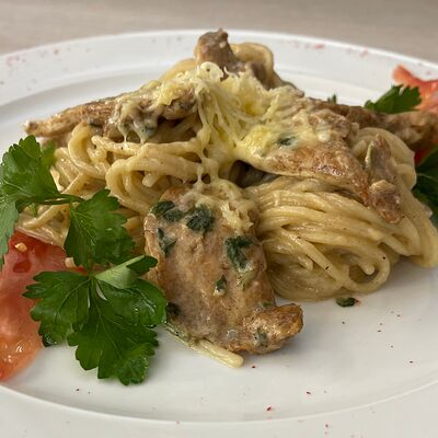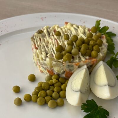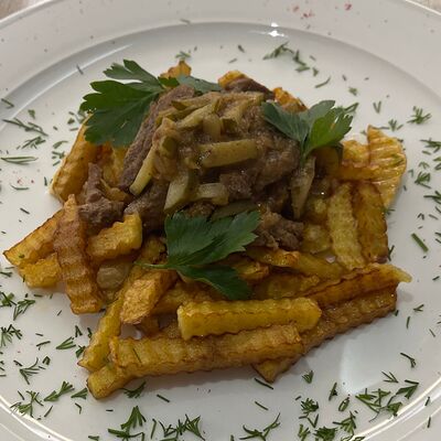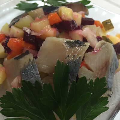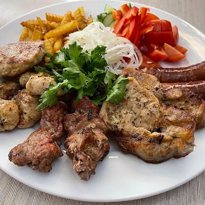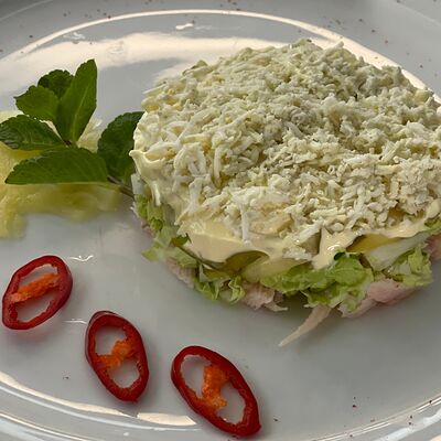 Мы предлагаем вам мясную солянку, собранную из свежей телятины, копченой курицы, двух видов колбасы, соленого огурца, маслин, моркови и лука