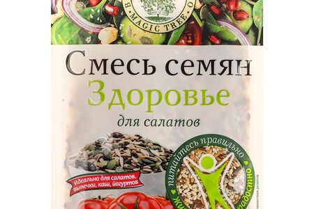 Смесь семян для салатов Здоровье сделает ваше блюдо безумно вкусным и максимально полезным. Cостав: кунжут белый, лен бурый, лен белый, семена подсолнечника, семена тыквы.