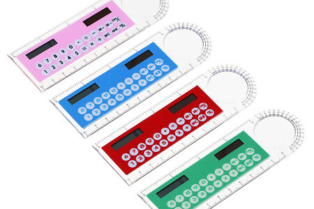 Калькулятор-линейка 8-разр.с лупой и транспортиром, солн.питание, 4,5х13,3см, 4 цвета доставка