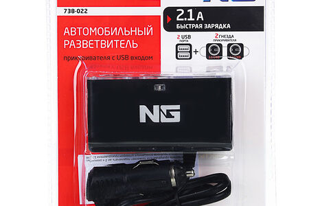 Ng разветвитель прикуривателя в авто, 2 гнезда, 2хusb, 60 w, 2.1а, 12/24в, пластик доставка