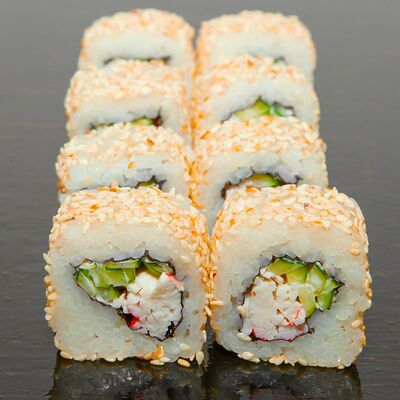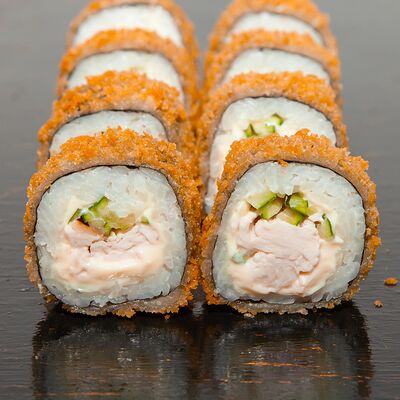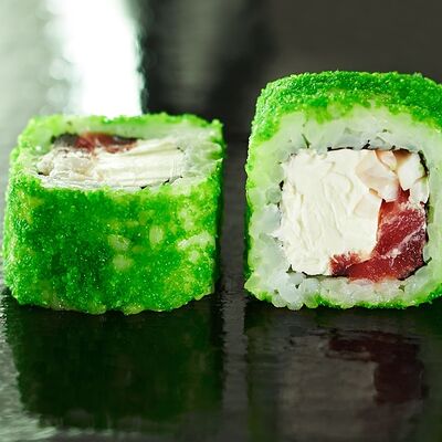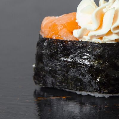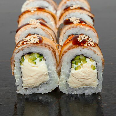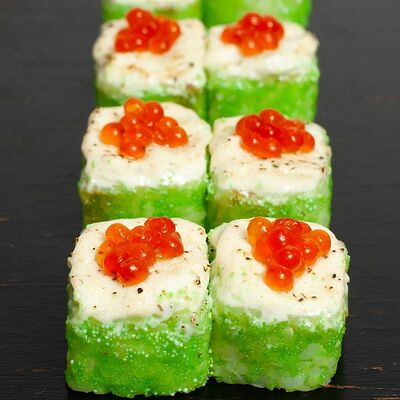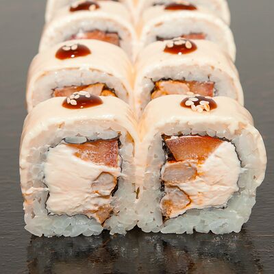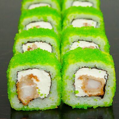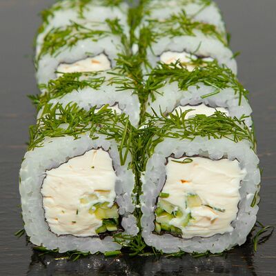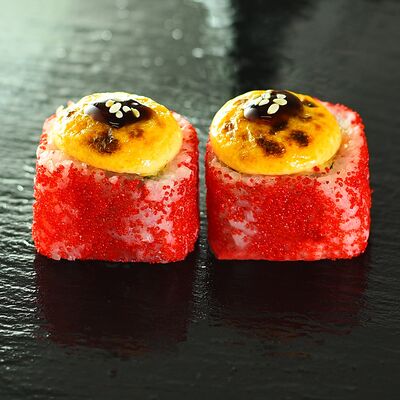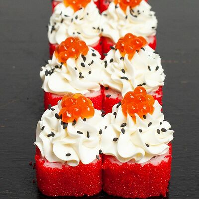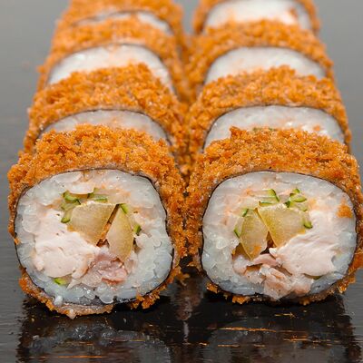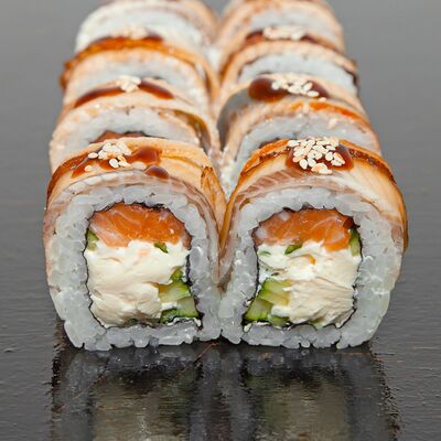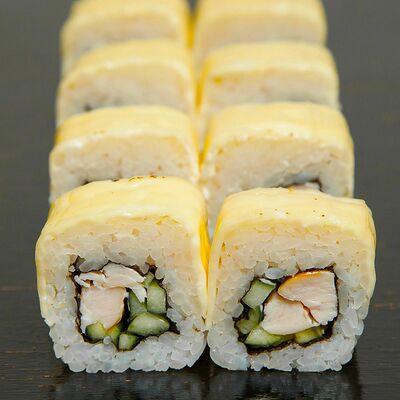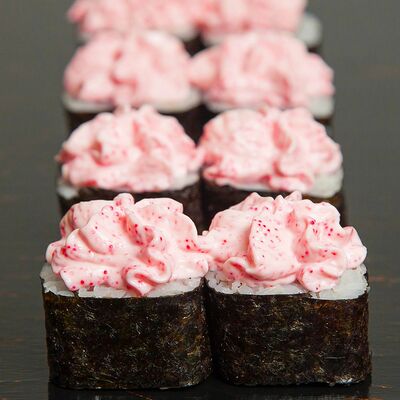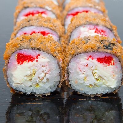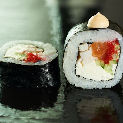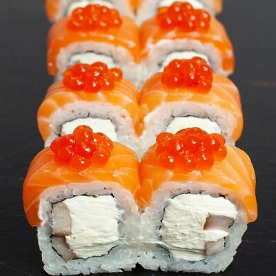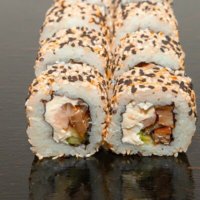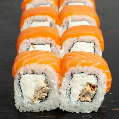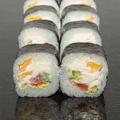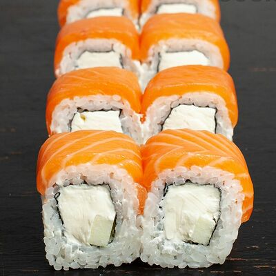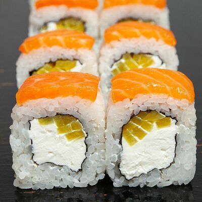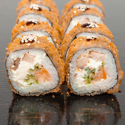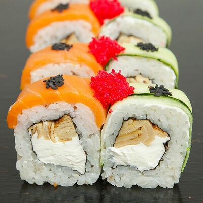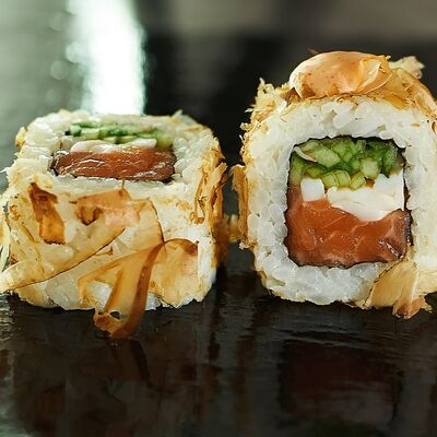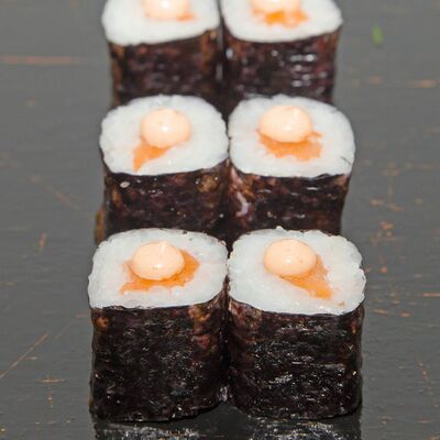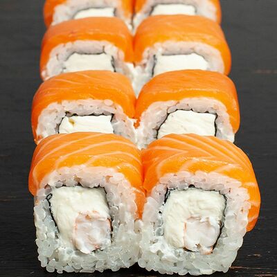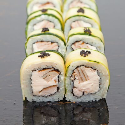 Сыр сливочный, лосось холодного копчения, спайси-соус, огурец, масаго красная, рис, нори (8 шт.)