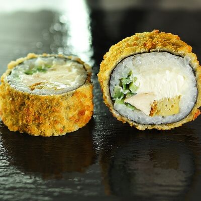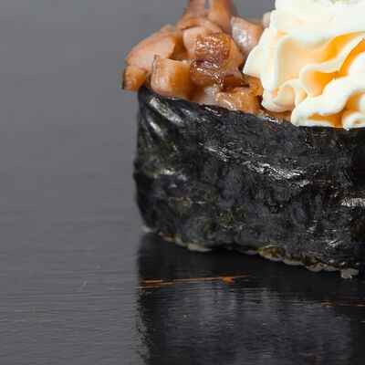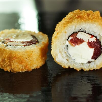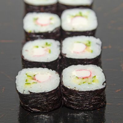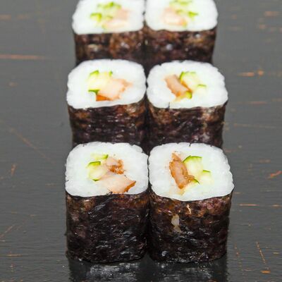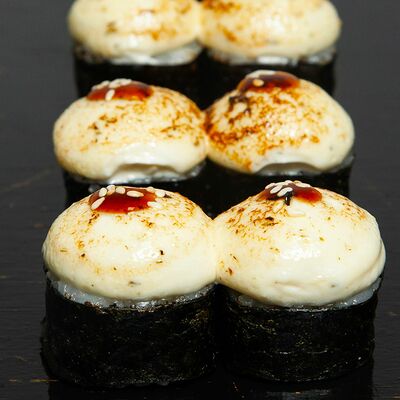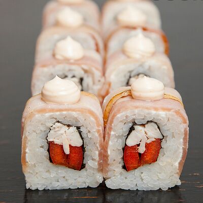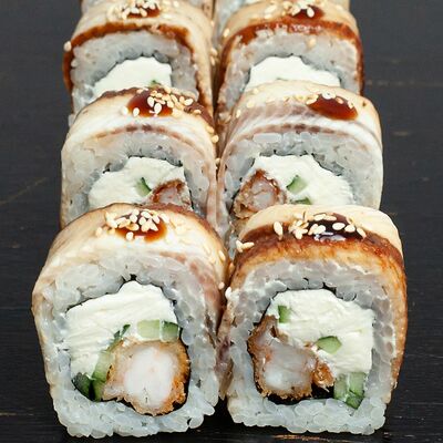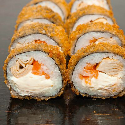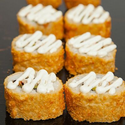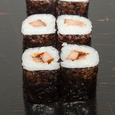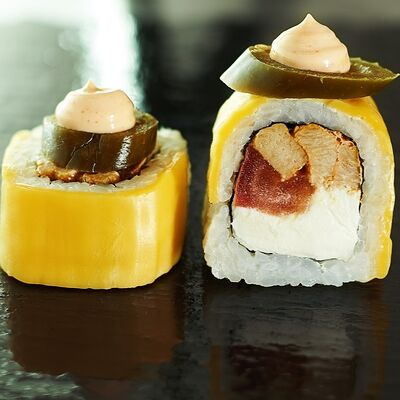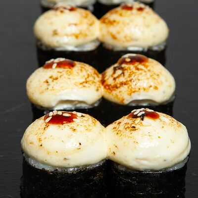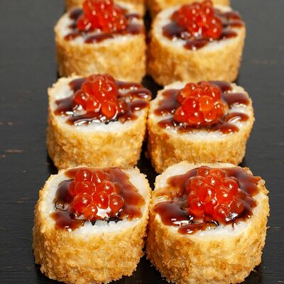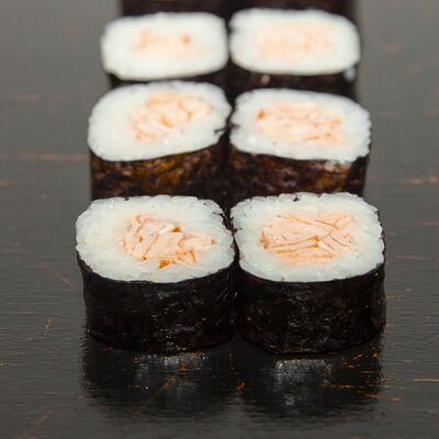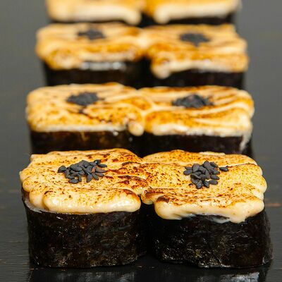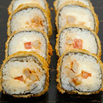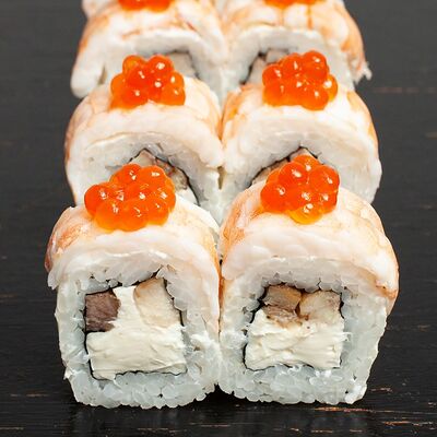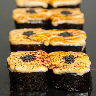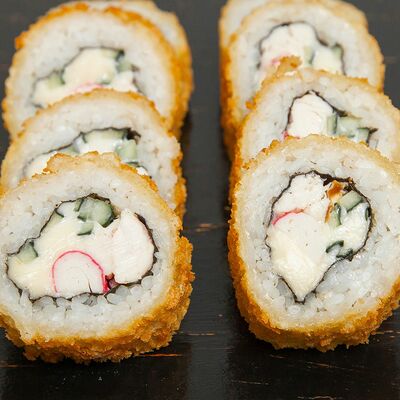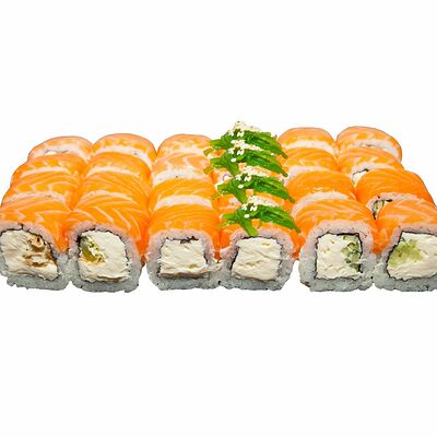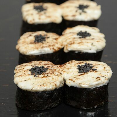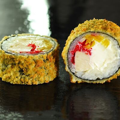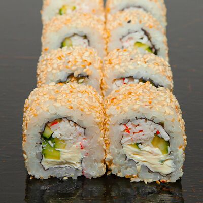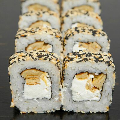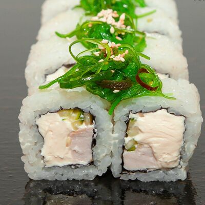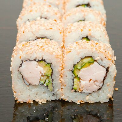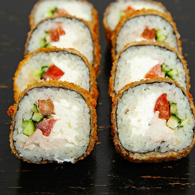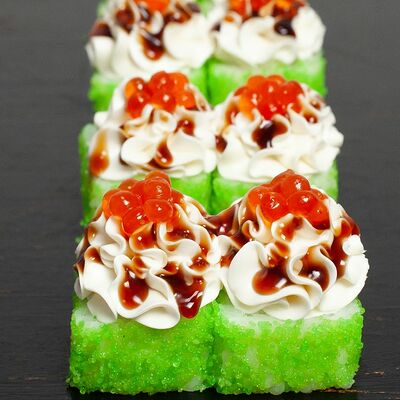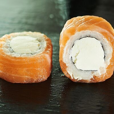 Сыр сливочный, лосось холодного копчения, спайси-соус, огурец, масаго красная, рис, нори (8 шт.)