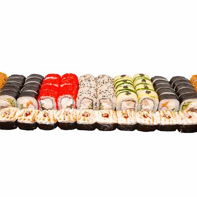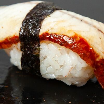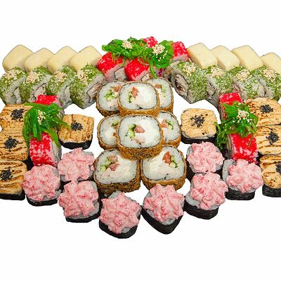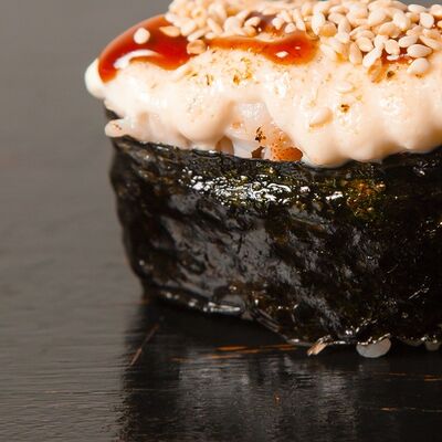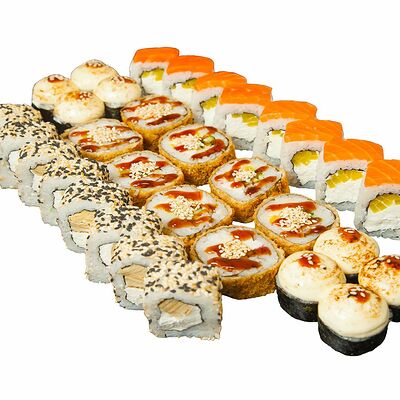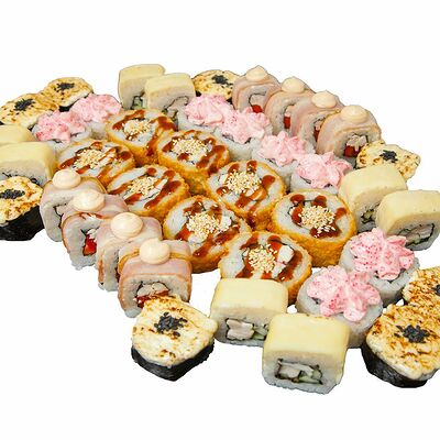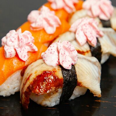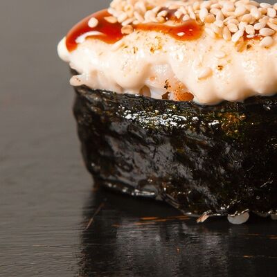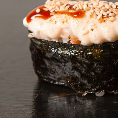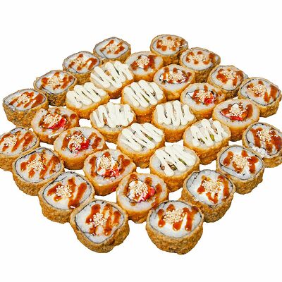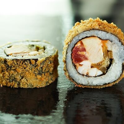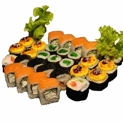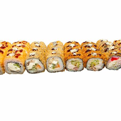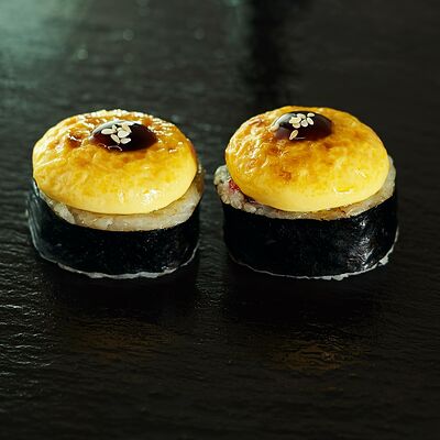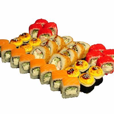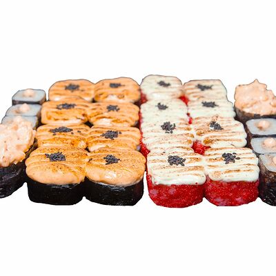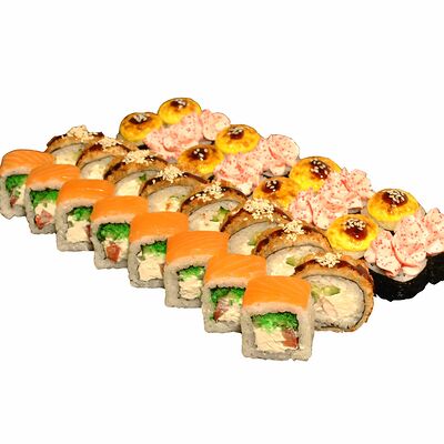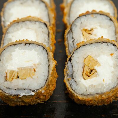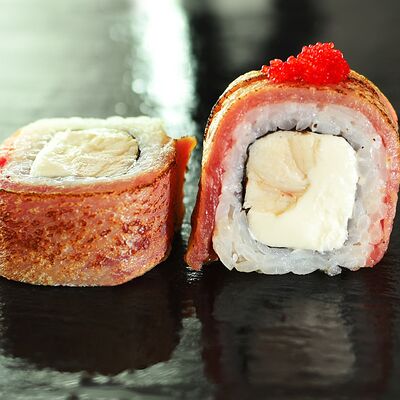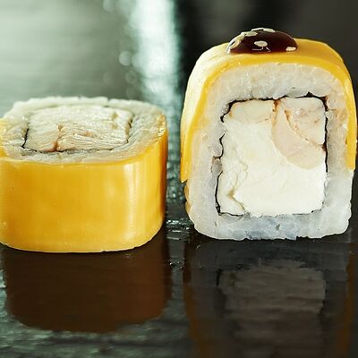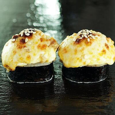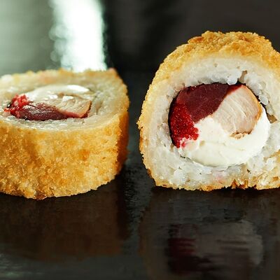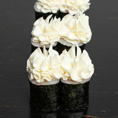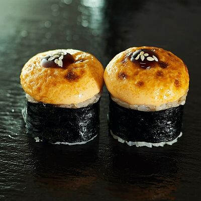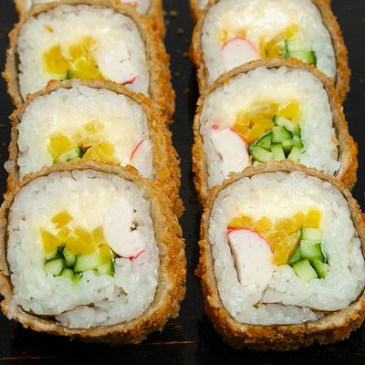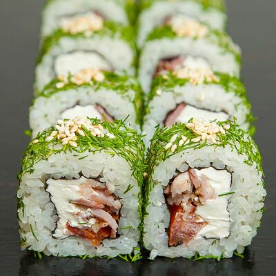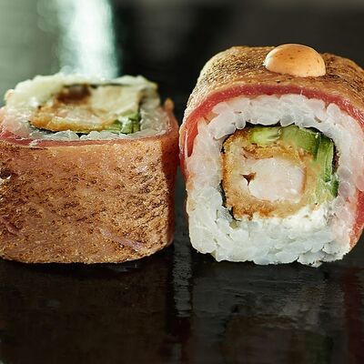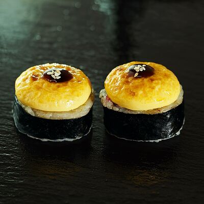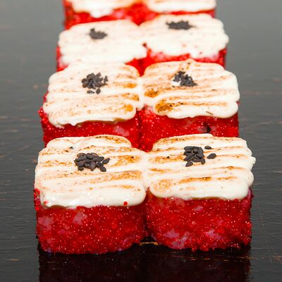 Сыр сливочный, лосось холодного копчения, спайси-соус, огурец, масаго красная, рис, нори (8 шт.)