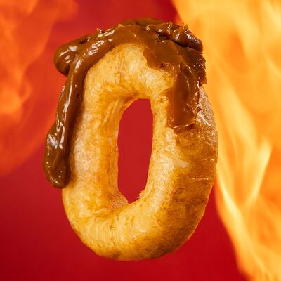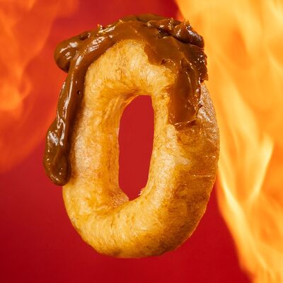 Пончики (мука, сливочное масло, молоко), обжаренные во фритюре с топпингом - грибами (обжаренные шампиньоны, творожный сыр)