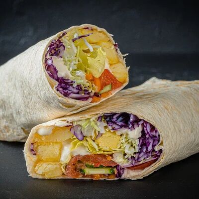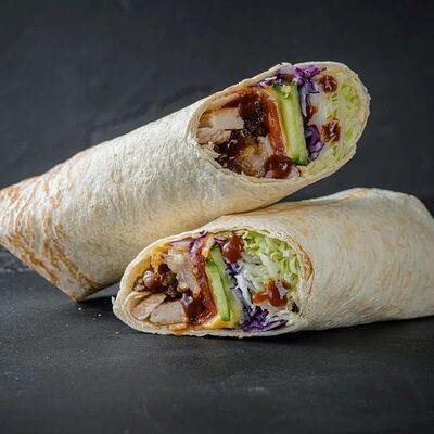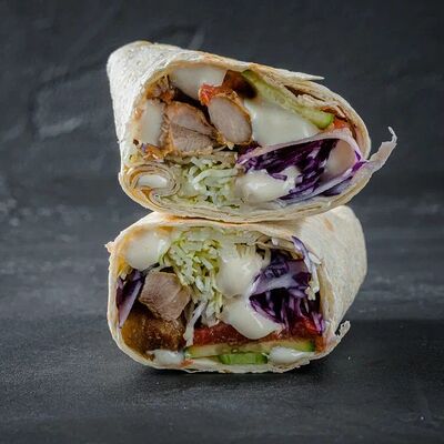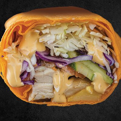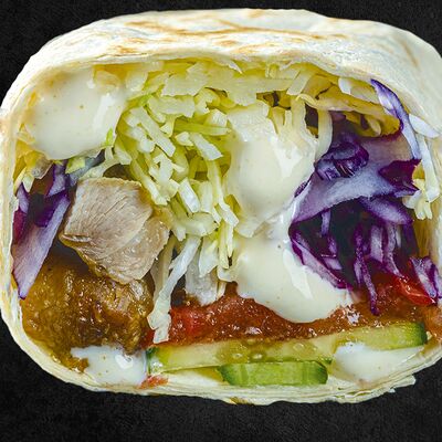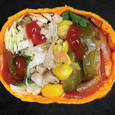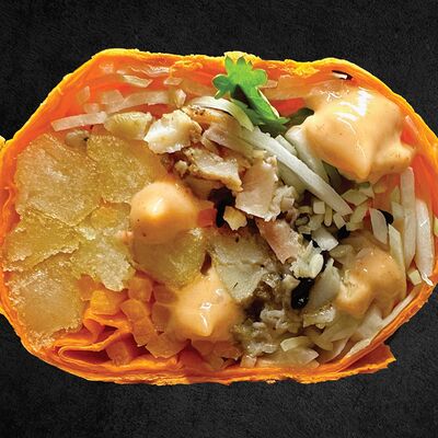 С соусом кимчи, корейской морковкой, картошкой фри, сочной курицей и кинзой
