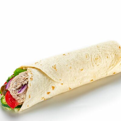 Колбаски из куриного мяса с добавлением cвинoго шпика со свежими овощами и соусом, завернутые в пшеничную лепешку. Рекомендуется горячим
