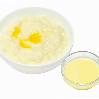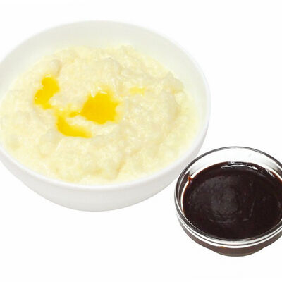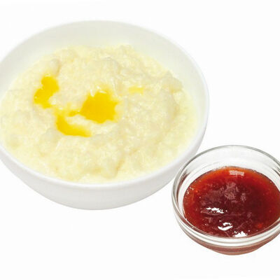 Каша рисовая, джем клубничный