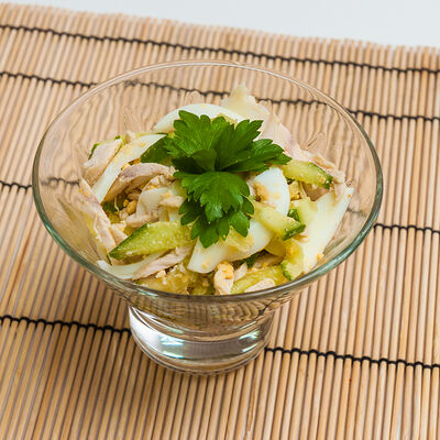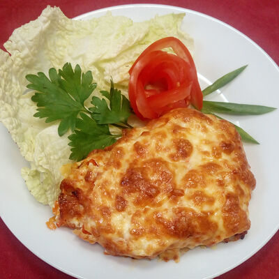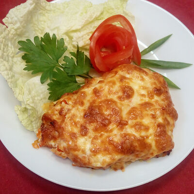 Куриное филе, помидоры, лук-репка, яйцо куриное, сыр, майонез