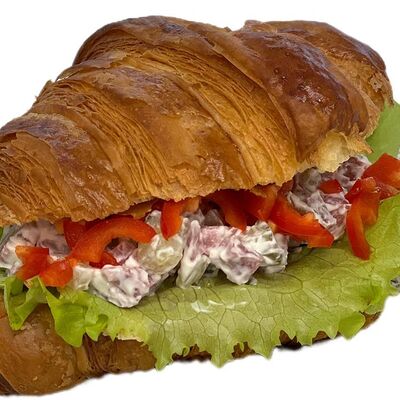 Листовой салат, ароматная варено - копченая говядина, нежный творожный сыр, кисло-сладкий соус, маринованные огурцы, хрустящий сладкий перец. Составляющие: мука пшеничная высшего сорта, масло сливочное 82,5%, салат листовой, сыр творожный Креметте, соус кисло-сладкий, огурцы маринованные, вода питьевая, перец сладкий, молоко отборное 3,2%, укроп свежий, сахар белый, яйцо куриное, дрожжи прессованные, сливки 33% жирности животного происхождения, соль, варено-копченая говядина