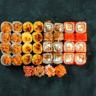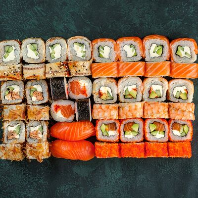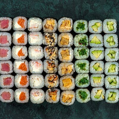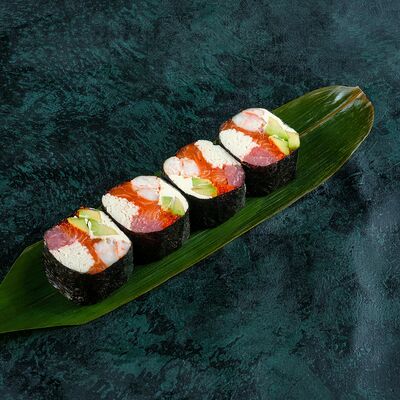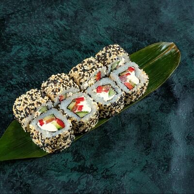 Рис, нори, сыр, огурец, кунжут, томат, перец болгарский