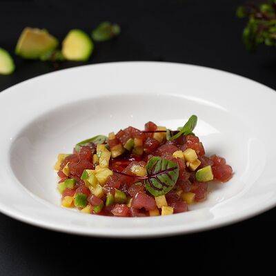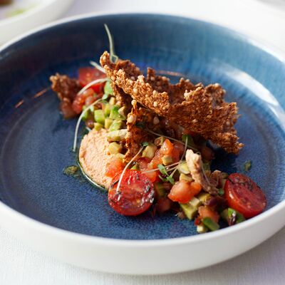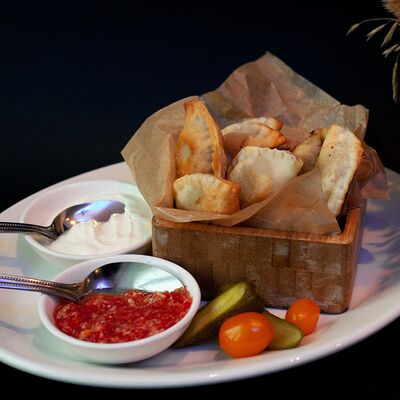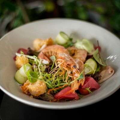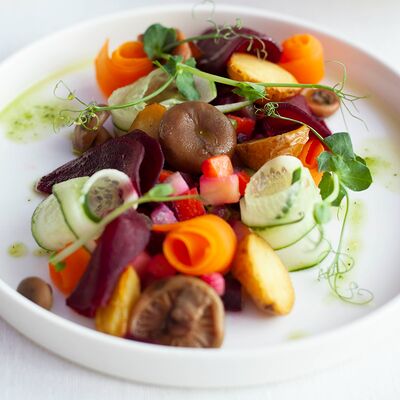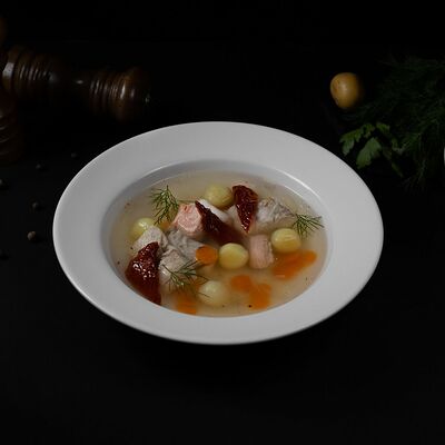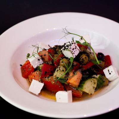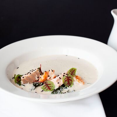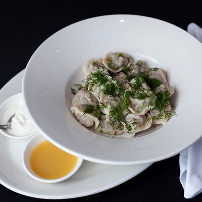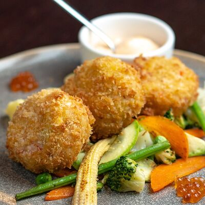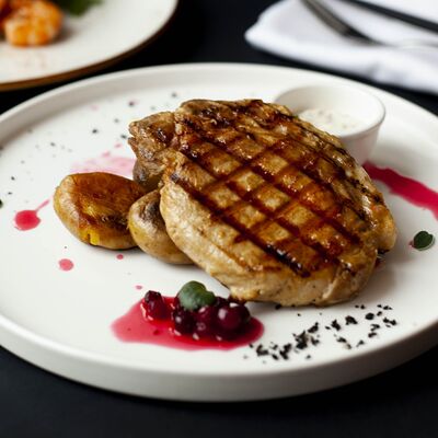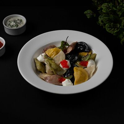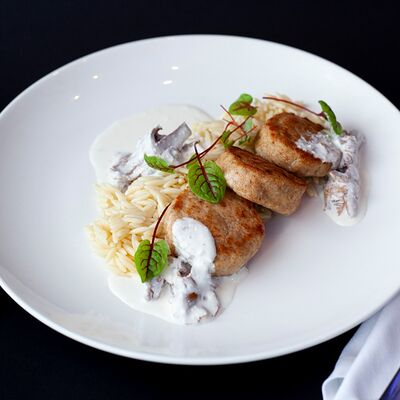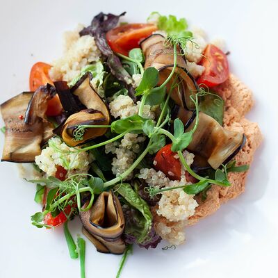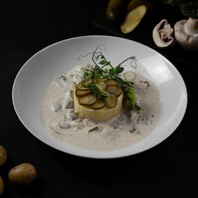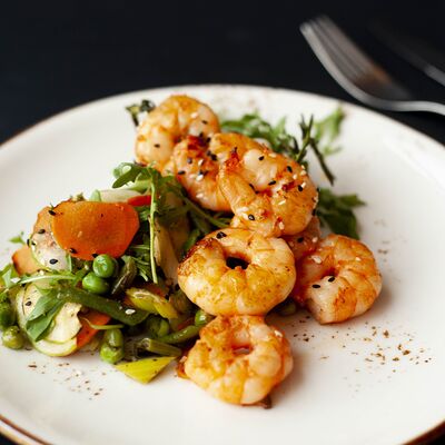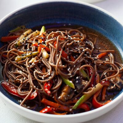 Полба, цукини, болгарский перец, морковь, грибы, кисло-сладкий соус тонкацу