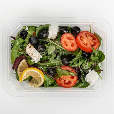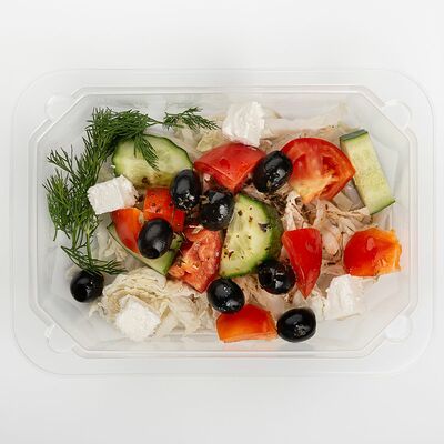 Легкий и полезный салат из свежих помидор, огурца и болгарского перца с добавлением сыра фета и маслин. Заправляется соусом на основе оливкового масла с добавлением бальзамика