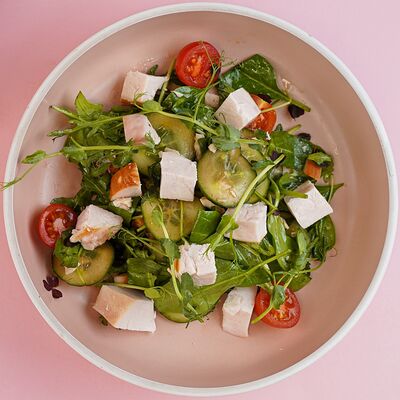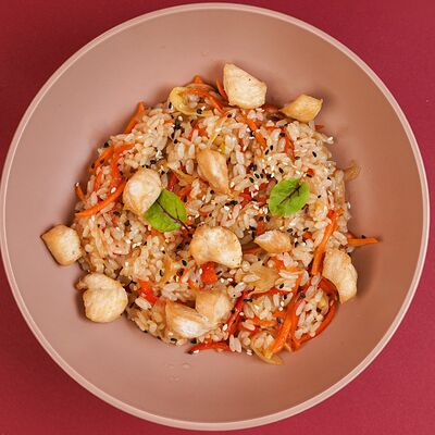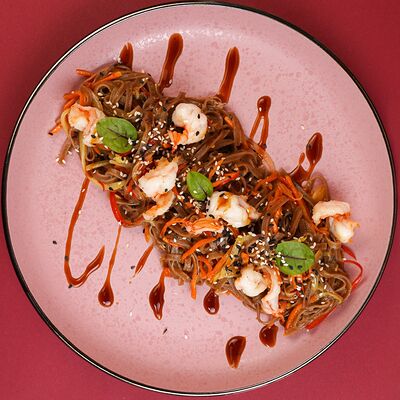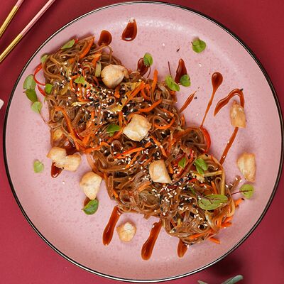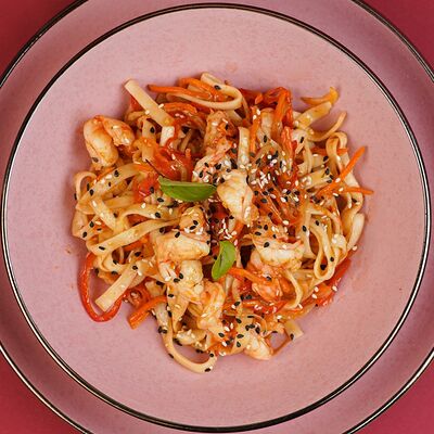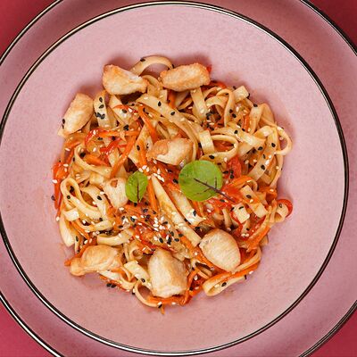 Лапша удон, курица, болгарский перец, цукини, лук репчатый, соус вок, масло растительное, соль