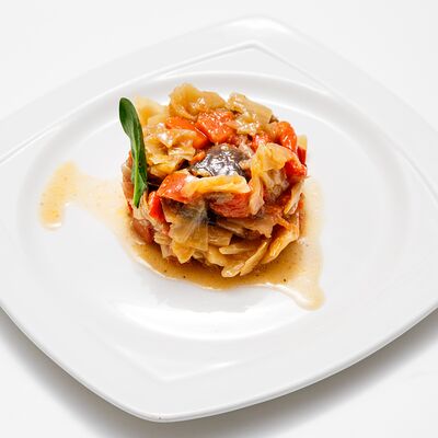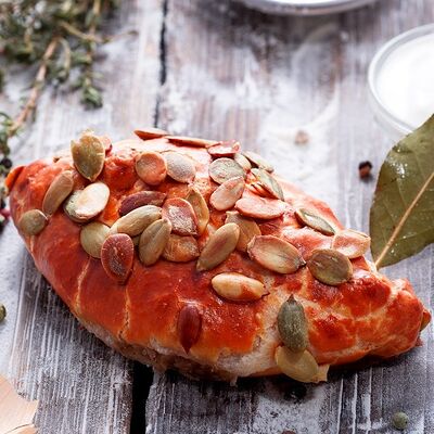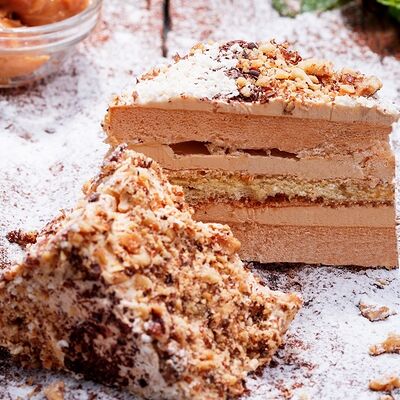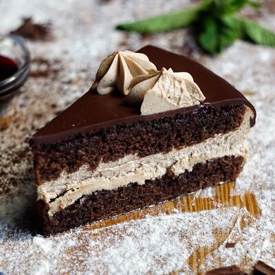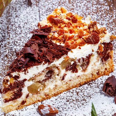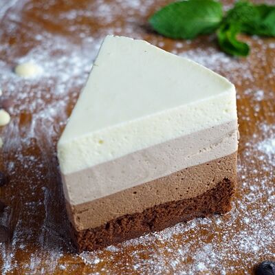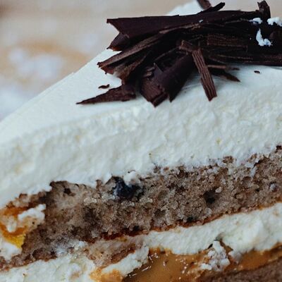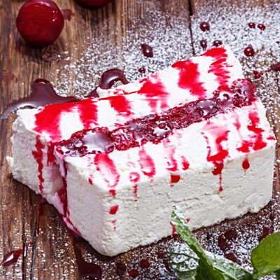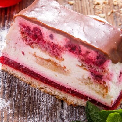 Нежный крем из сливочного сыра креметте и маскарпоне с прослойкой из пряной вишни