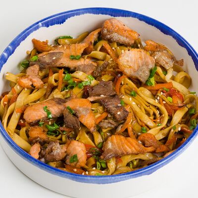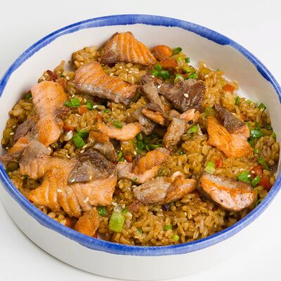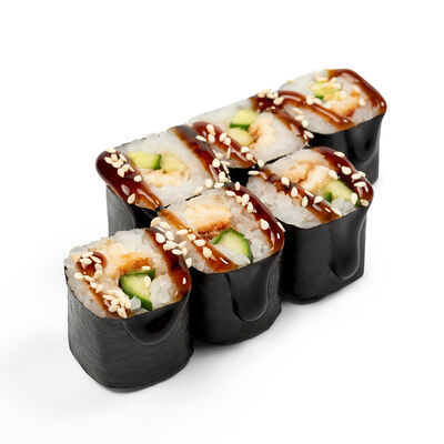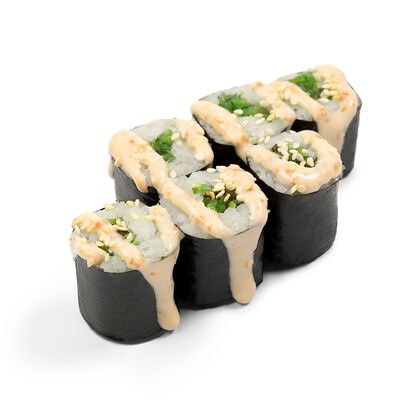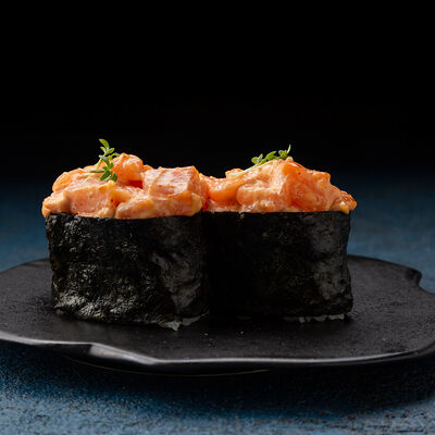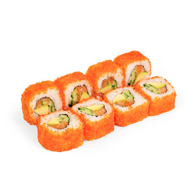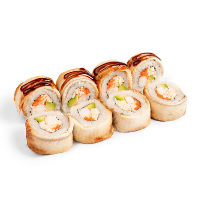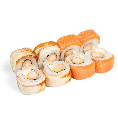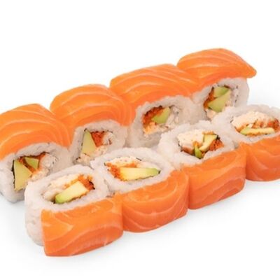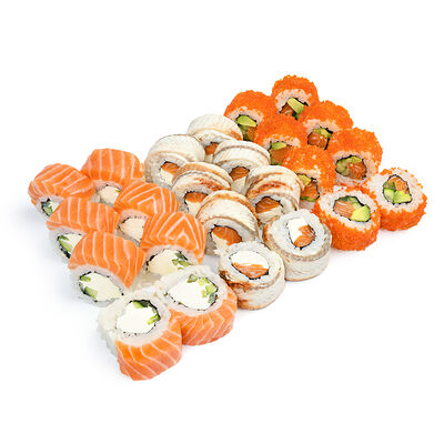 Свежий лосось, угорь, краб спайси, икра тобико, авокадо, рис, нори