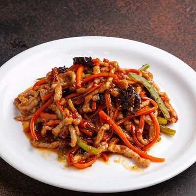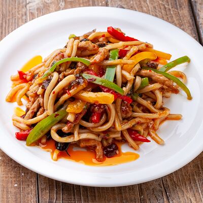 Фунчоза, свинина, пекинская капуста, огурцы, морковь
