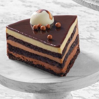 Бисквит с маком, крем сливочно-сметанный, сахарный сироп, гляссаж зеркальный, глазурь шоколадная