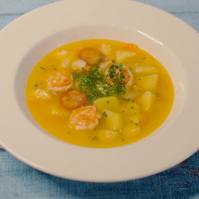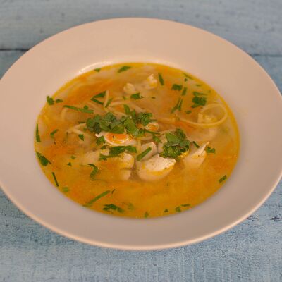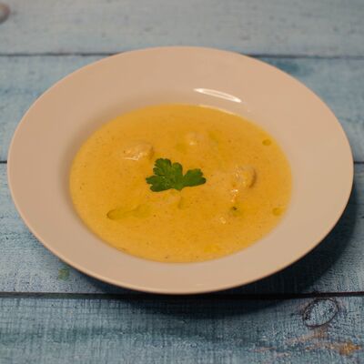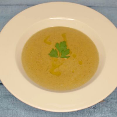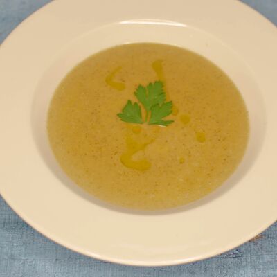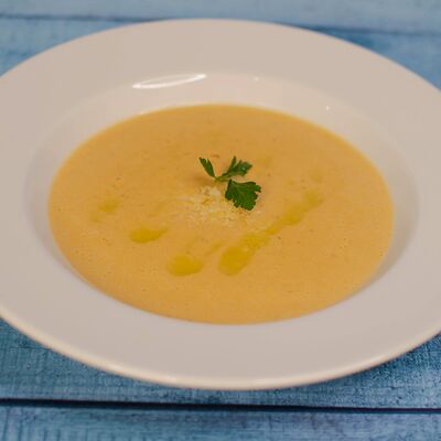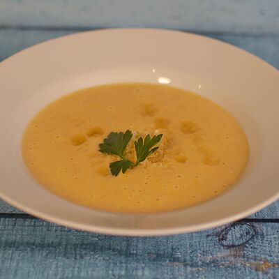 Картофель, морковь, лук, брокколи, куриный бульон, сливки, гренки