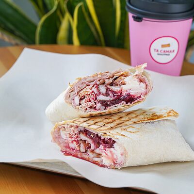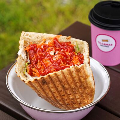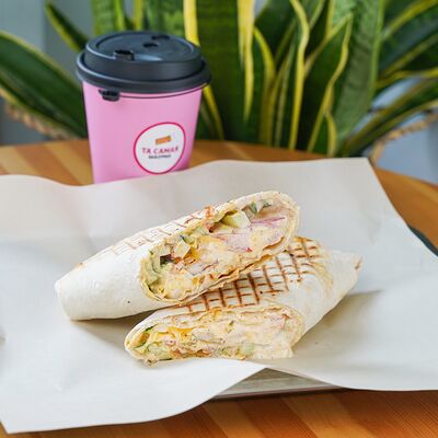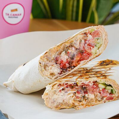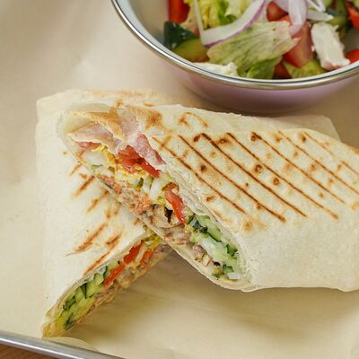 Лаваш армянский, цыпленок, огурцы, томаты, пекинская капуста, морковь по-корейски, соус