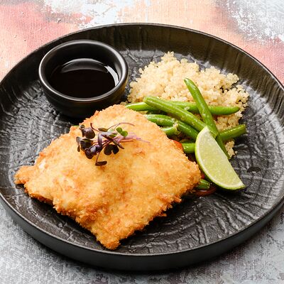Филе минтая с соусом и паровым рисом