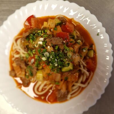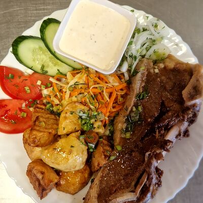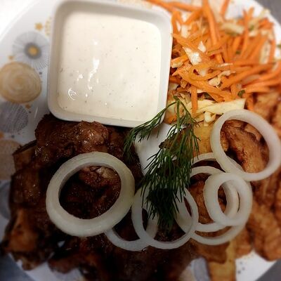 Тесто, мясо, лук, специи, соус (5 шт.)