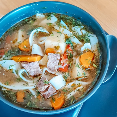 Наваристый куриный бульон с хинкали доставка