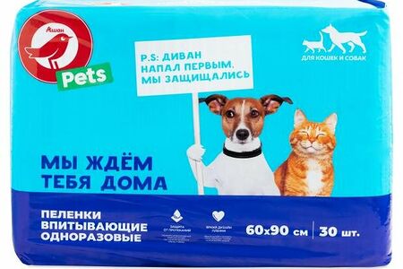 Пеленки для животных АШАН Красная птица впитывающие одноразовые 60x90, 30 шт доставка