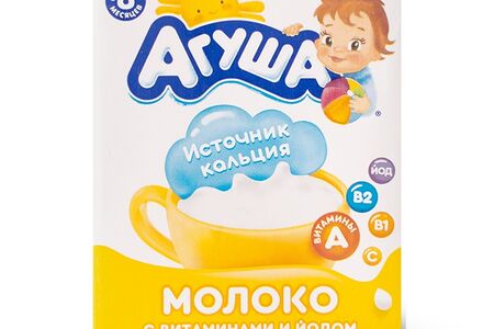 Молоко Агуша обогащенное витаминами и йодом 2.5% 200мл с 8 месяцев доставка