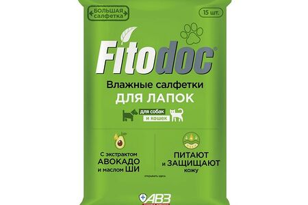 Влажные салфетки АВЗ Fitodoc для лап с экстрактом авокадо и маслом ши 15шт доставка