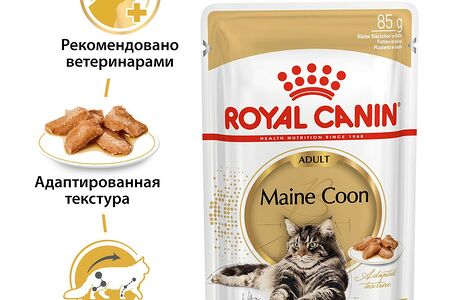 Корм для кошек влажный Royal Canin Maine Coon, мясо, кусочки в соусе доставка